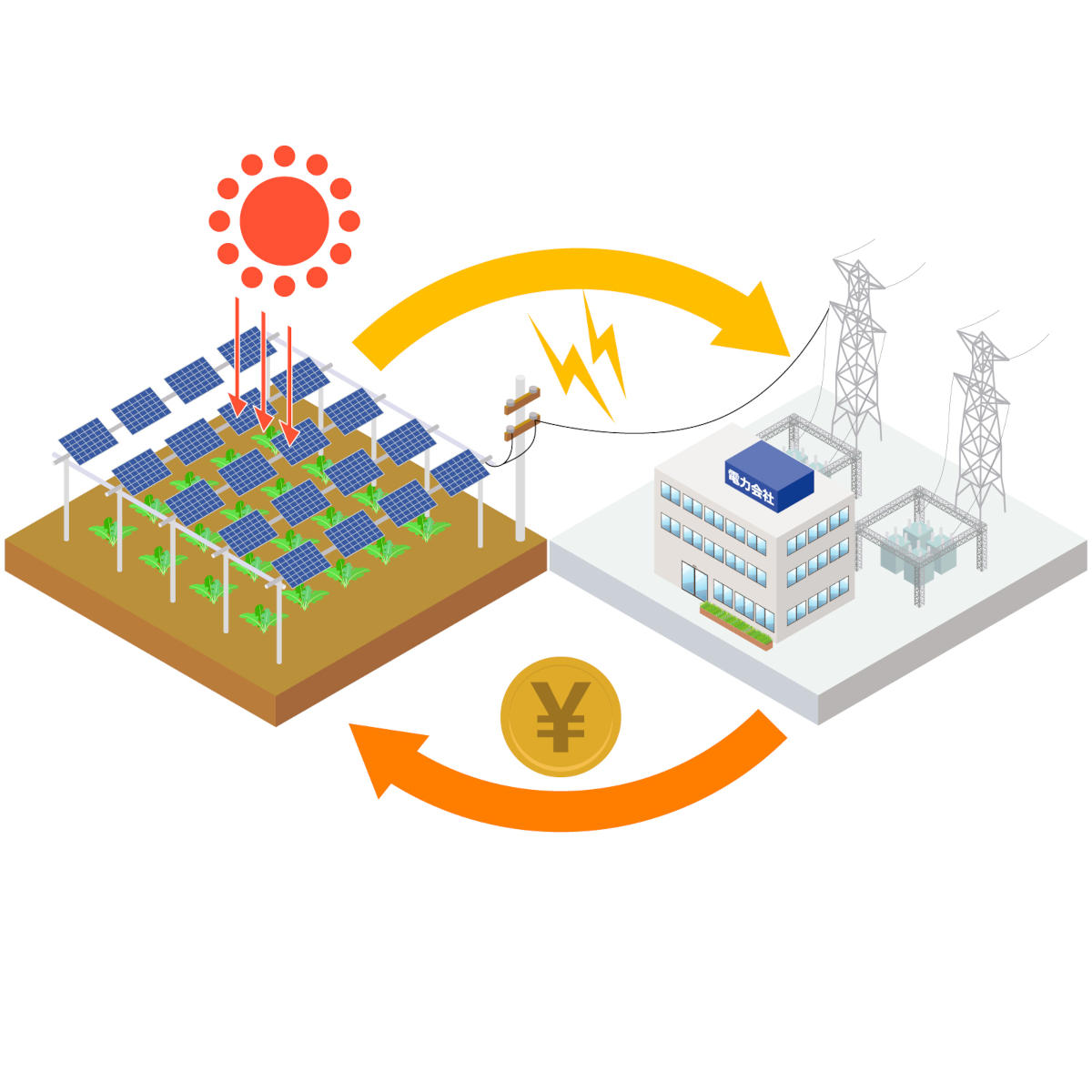 ソーラーシェアリングとは、農業をしながら太陽光発電をおこなうことです。農業と太陽光で農地を共有(シェア)することから、ソーラーシェアリングと呼ばれています。